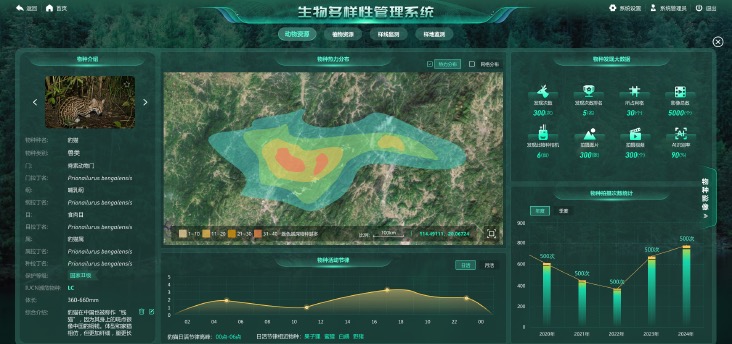 通过数字化平台整合资源信息,实现对本底资源的分类建档、动态监测和精准定位。系统支持对动物和植物的种类、分布、数量等信息的实时更新,以及样线样地和基础设施的标准化管理。